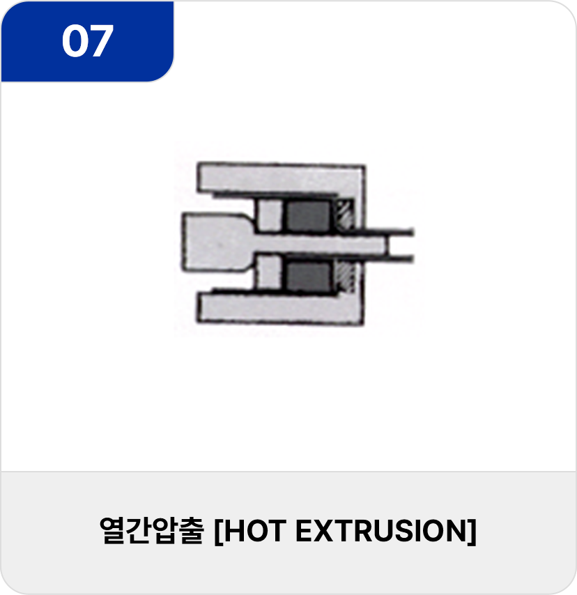- 가열된 Billet를 원하는 제품 형상으로 열간압출(수중)한다.