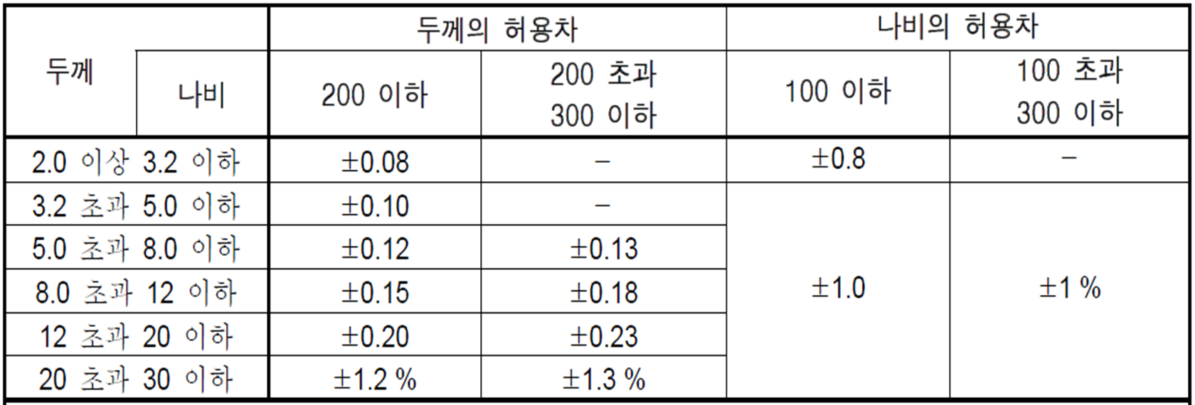 : Min. 8mm ~ Max. 110mm - 기타 규격(두께 / 나비)은 담당자와 협의하여 결정한다.